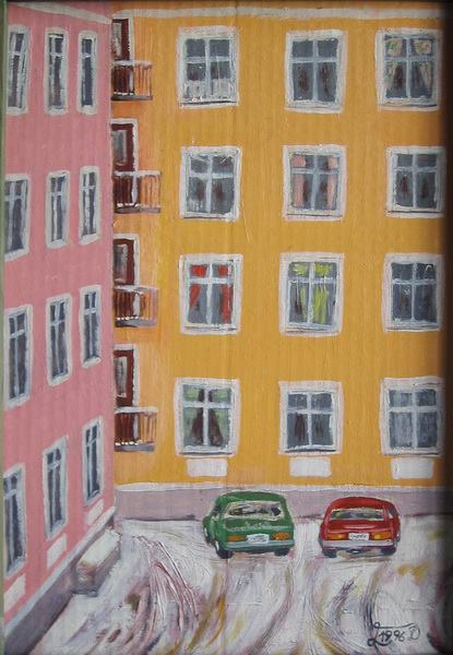 "View of the courtyard from the window on Vasу str." Oil on cardboard. 1996. On a private collection.