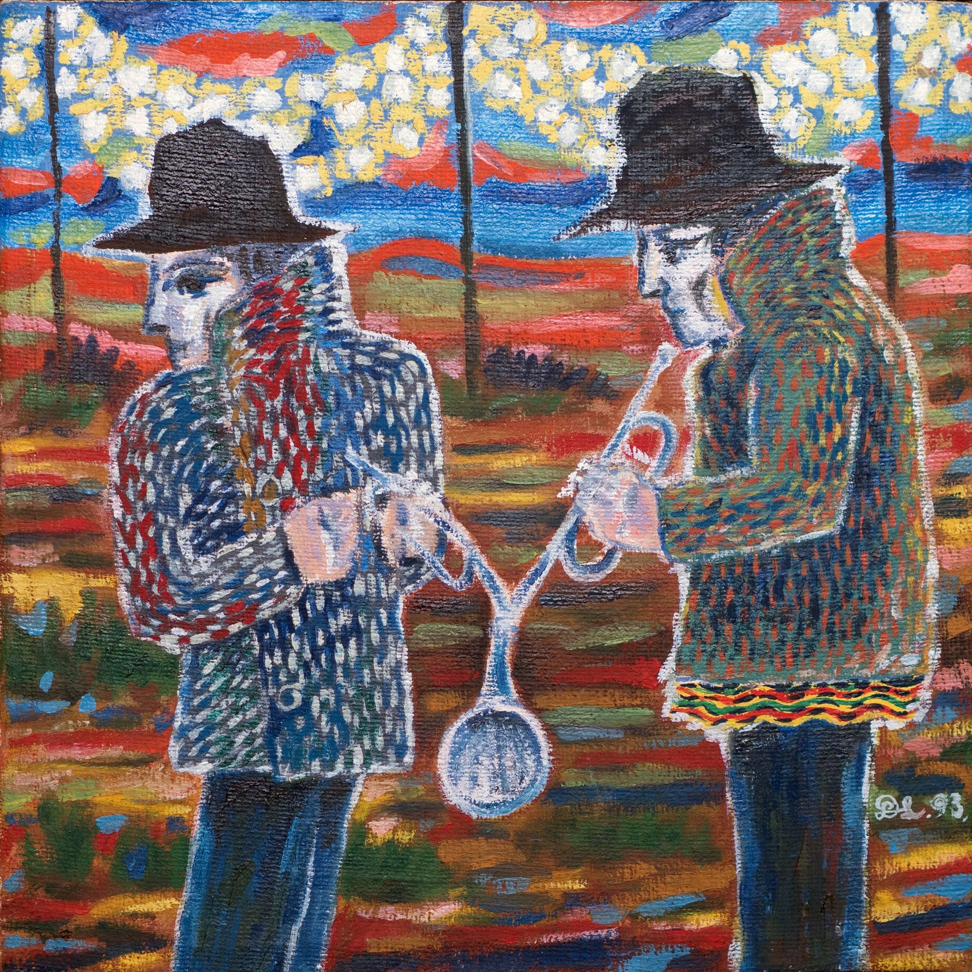 "Two Trumpeters" 50x50 cm. Oil on canvas. 1993. In a private collection.