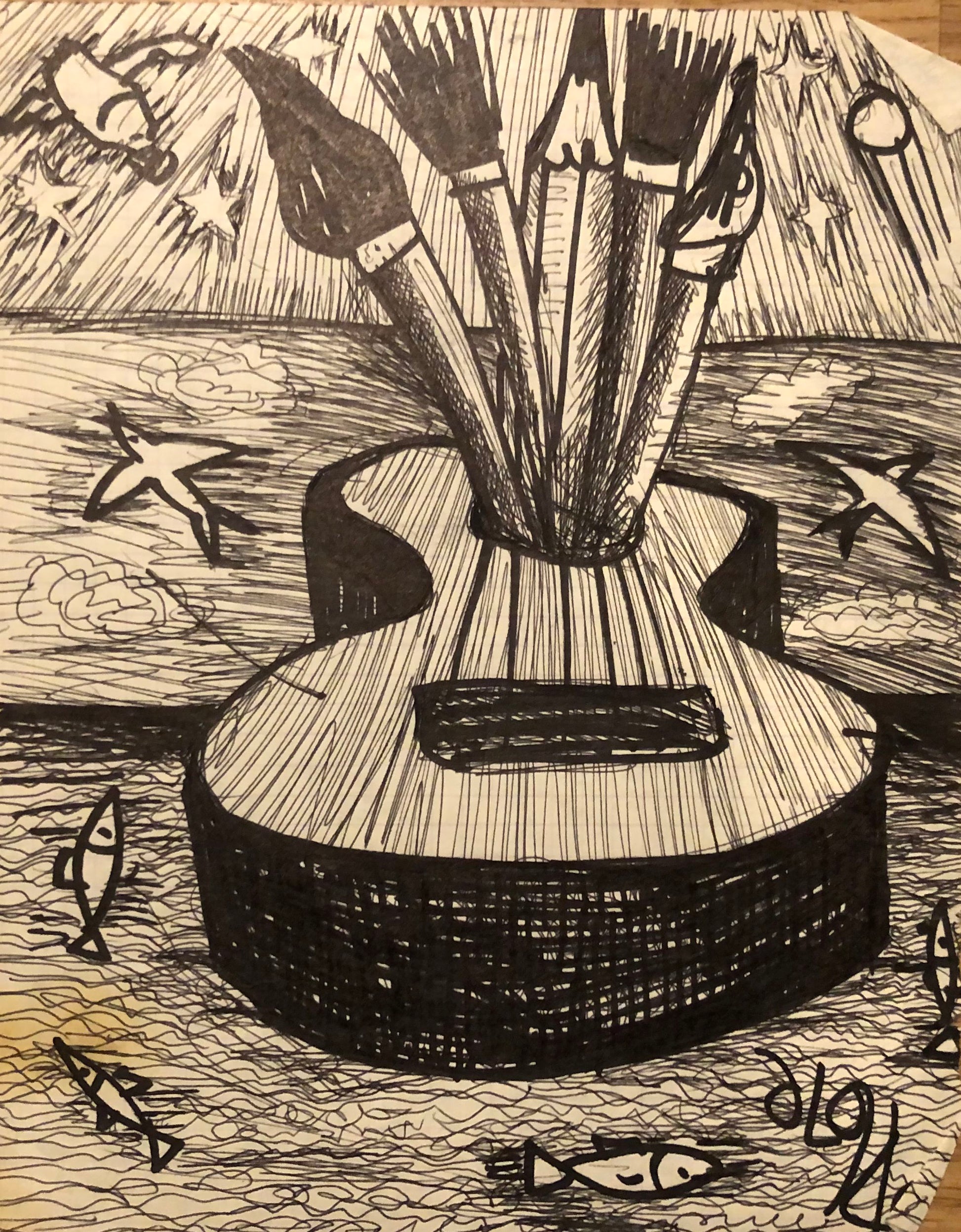 21x29 cm. Felt pen on paper. For greater safety, the work is delivered on a hard cardboard tablet.