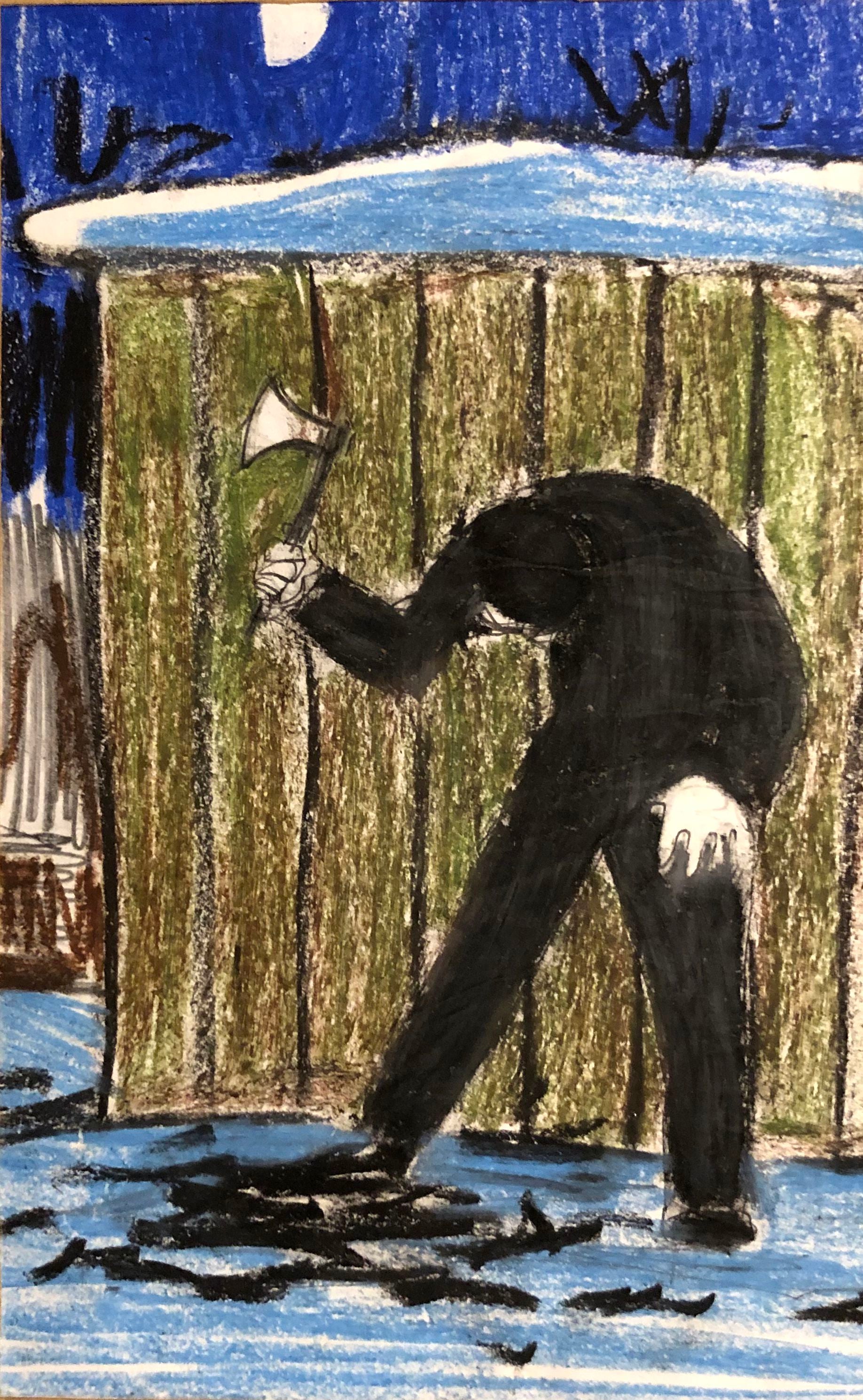12x18 cm. (dimensions without passe-partout ). Oil pastel on paper. 2005. In the original passe-partout from the author. Most likely, the author made an illustration for his next grotesque story from the poetic cycle "bubbles". For greater safety, the work is delivered on a hard cardboard tablet.