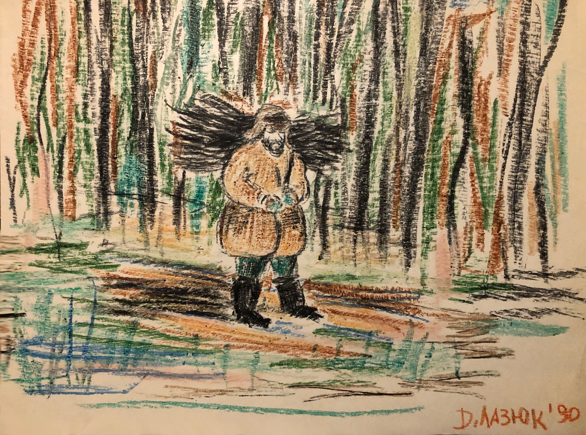 21x29 cm. Oil pastel on paper. 1990 . Literary allusion. For greater safety, the work is delivered on a hard cardboard tablet.